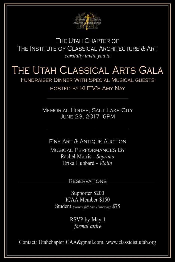 For more information on the Institute of Classical Architecture and Art visit ClassicistUtah.org and to attend the upcoming gala: